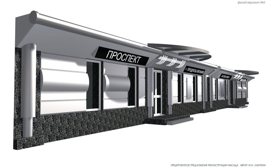 Реконструкция фасада магазина "Санта-Лючия" в г.Павлоград. Генеральный проектировщик и генстройподрядчик ООО"Укрспецстрой". Рабочий проект